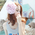 拿丸子妹妹头换粉玫瑰花花泳裙