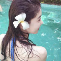 粉玫瑰花花泳裙