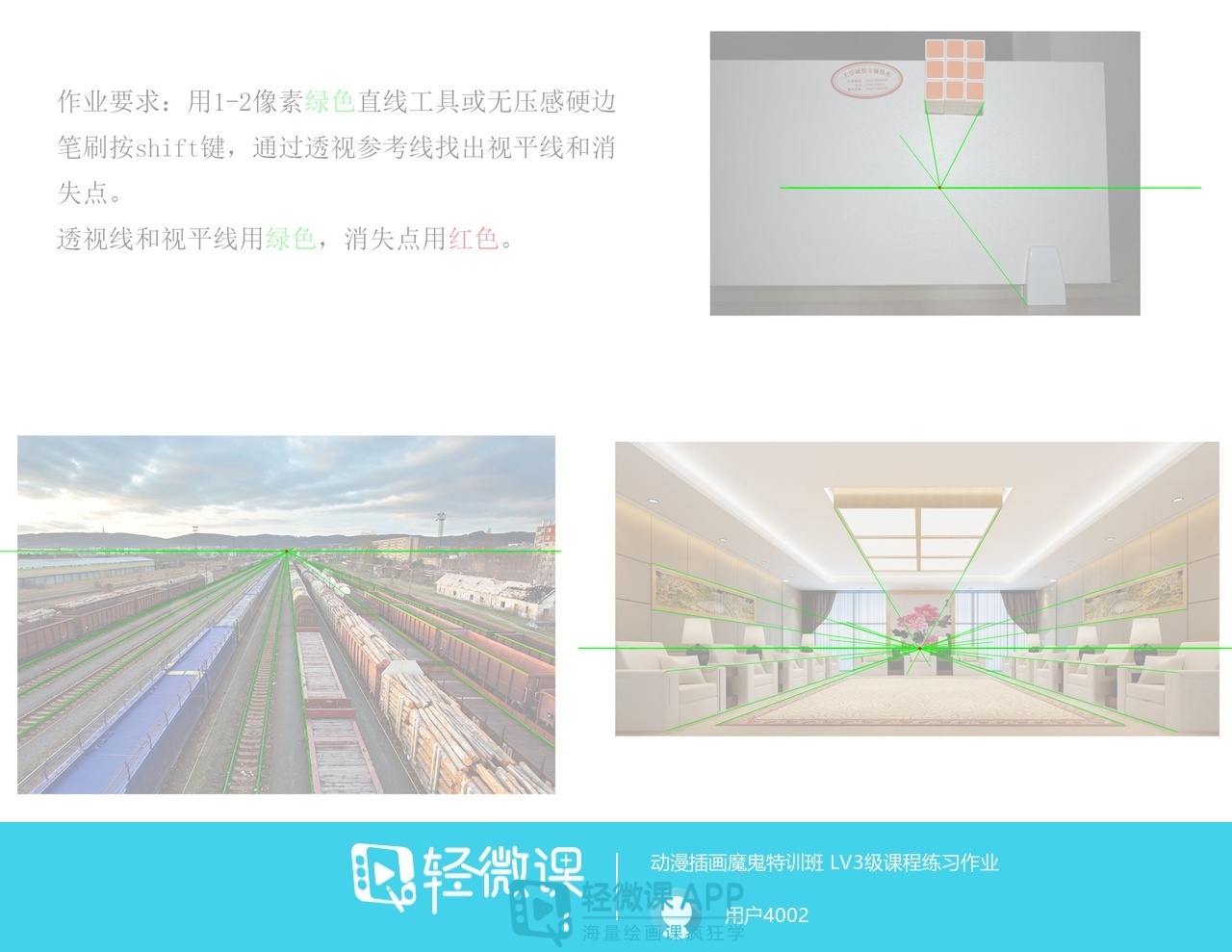2、近宽远窄:例如下图的立方体透视图近处的那个边就比远处的边宽。还有你站在铁路中间往远处看是不是铁路会越来越窄。