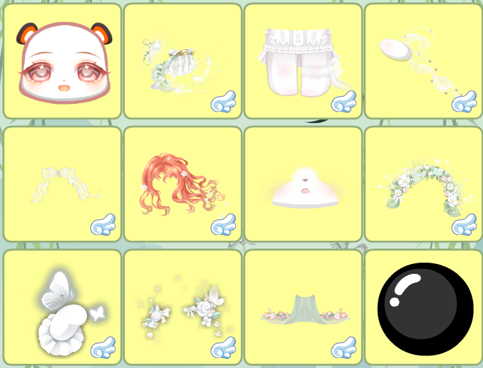 搭配部件:琼羽踏霜衣,九尾狐妖左袖,浮世献歌妆,除妖小头皇冠,木乃伊凌乱白发,宫廷少女站姿,鎏金缀玉团扇,允·魅衣缝匠项链,鬼娃木偶操纵,幻时霓纱,金狮·筑梦,金狮·云端,巨蟹座秘密星言